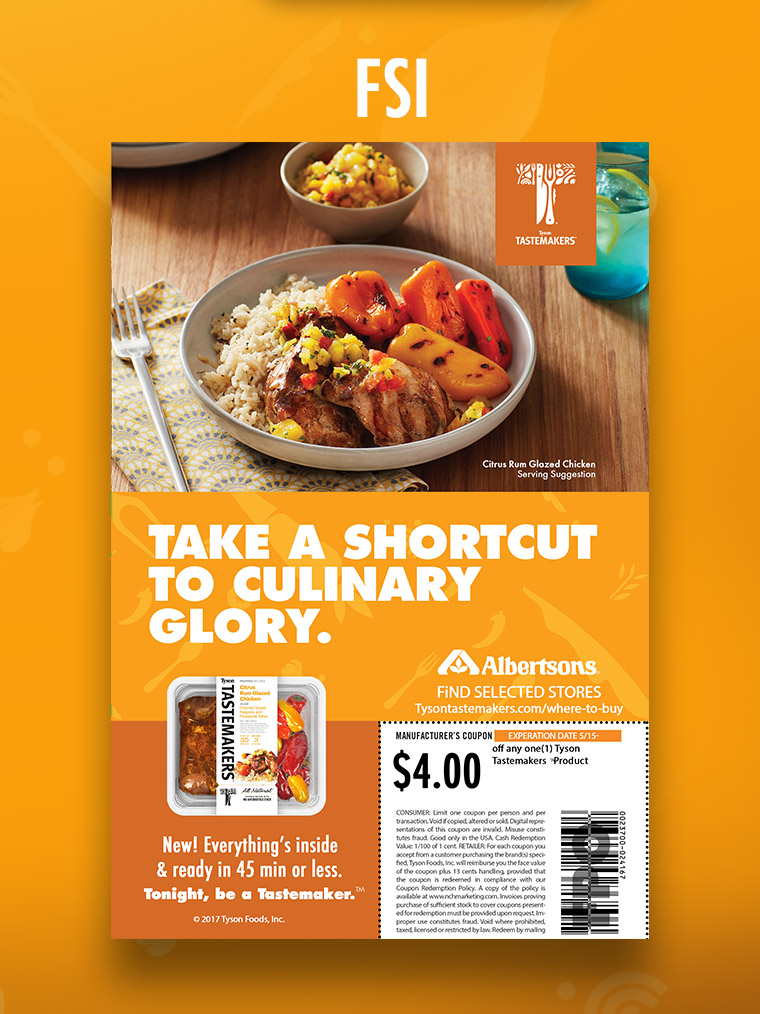 A Tyson Tastemakers product was being introduced and creative elements were required for retailers like Target, Walmart, Kroger and etc. The client requested a look & feel be developed using existing photography. After approval, the solution had to be applied to social media posts, digital, print and in-store elements to drive awareness and support deal offers.